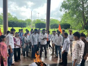 विश्वविद्यालय परिसर में एबीवीपी कार्यकर्ताओं ने कुलपति का पुतला दहन कर जोरदार विरोध प्रदर्शन किया। आंदोलन के दौरान कार्यकर्ताओं ने नारेबाजी करते हुए स्पष्ट संदेश दिया कि यह संघर्ष केवल एक कॉलेज का नहीं, बल्कि आदिवासी समाज के शैक्षिक अधिकारों और आत्मसम्मान का आंदोलन है।