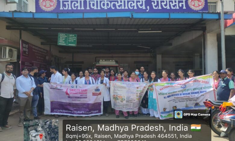 एम्स भोपाल द्वारा ‘स्वस्थ नारी, सशक्त परिवार’ अभियान के अंतर्गत जिला अस्पताल, रायसेन में निःशुल्क स्वास्थ्य शिविर आयोजित