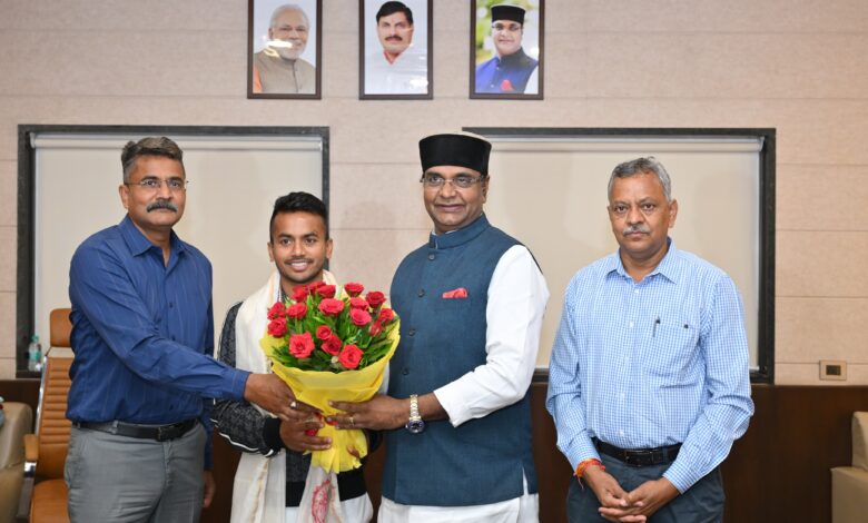 हॉकी एशिया कप में विजय पर मंत्री श्री सारंग ने हॉकी खिलाड़ी श्री विवेक सागर को किया सम्मानित