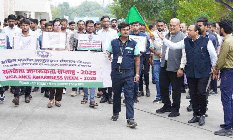 एम्स भोपाल में सतर्कता जागरूकता सप्ताह 2025 की शुरुआत, कर्मचारियों ने ली ईमानदारी की शपथ