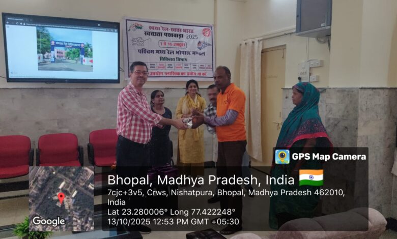 मंडल रेल प्रबंधक के मार्गदर्शन में स्वच्छता पखवाड़ा-2025 एवं स्वच्छता गतिविधियों में सफाई मित्रों के द्वारा लगातार सराहनीय योगदान दिया जा रहा है। इस अवसर पर 13 तारीख को मंडल रेल चिकित्सालय भोपाल में सफाई मित्रो द्वारा किये जा रहे सराहनीय कार्य एवं उनके उत्कृष्ट योगदान लिए मुख्य चिकित्सा अधीक्षक डॉ अजय डोगरा के द्वारा सफाई मित्रो का सम्मान कार्यक्रम आयोजित किया गया। जिसमें उत्कृष्ट कार्य करने वाले सफाई मित्रो को उपहार देकर सम्मानित किया गया एवं आभार प्रकट किया गया।