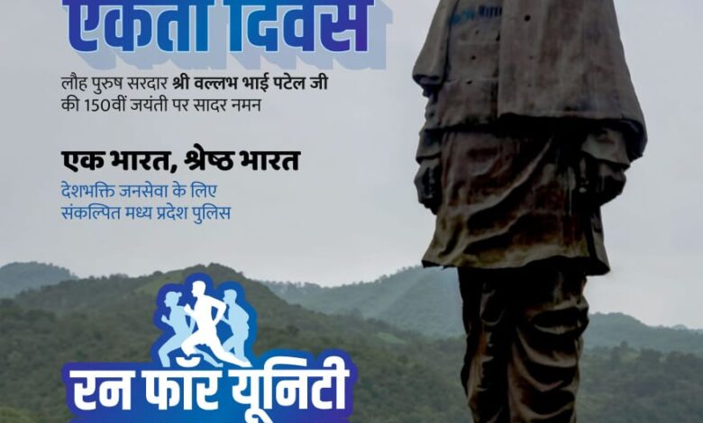 भारत के लौह पुरुष सरदार वल्लभभाई पटेल की 150वीं जयंती के अवसर पर दिनांक 31 अक्टूबर 2025 को पूरे देश में राष्ट्रीय एकता दिवस मनाया जाएगा। इस उपलक्ष्य में मध्यप्रदेश पुलिस द्वारा राज्य के सभी जिलों और थाना स्तर पर “एकता दौड़ (Run for Unity)” का आयोजन किया जाएगा।
