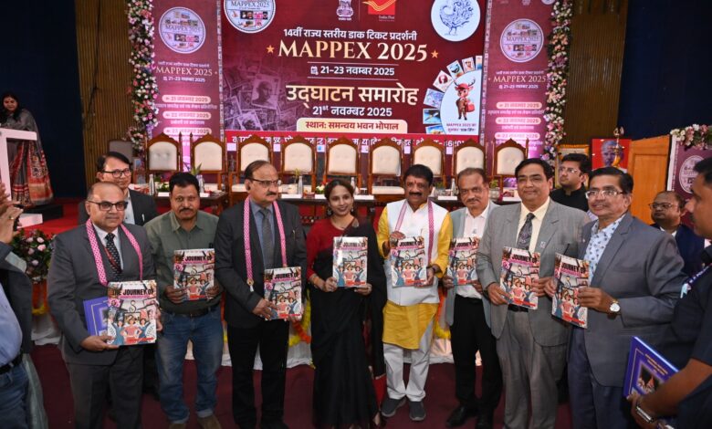 मध्यप्रदेश डाक परिमंडल द्वारा आयोजित तीन दिवसीय 14वीं मध्यप्रदेश राज्य स्तरीय डाक टिकट प्रदर्शनी “मेपेक्स 2025” का भव्य शुभारंभ हुआ। समन्वय भवन भोपाल में आयोजित इस राज्य स्तरीय डाक टिकट प्रदर्शनी का उद्घाटन माननीय आलोक शर्मा, सांसद भोपाल संसदीय क्षेत्र द्वारा किया गया । कार्यक्रम की अध्यक्षता विनीत माथुर, मुख्य पोस्टमास्टर जनरल, मप्र डाक परिमंडल द्वारा की गई। अतिथियों का स्वागत श्री पवन कुमार डालमिया, निदेशक डाक सेवाएं (मुख्यालय) द्वारा किया गया । प्रदर्शनी में गणमान्य नागरिकों, फिलाटेलिस्टों, अधिकारियों सहित विभिन्न स्कूलों से आए अध्यापकों व विद्यार्थियों ने भी हिस्सा लिया।