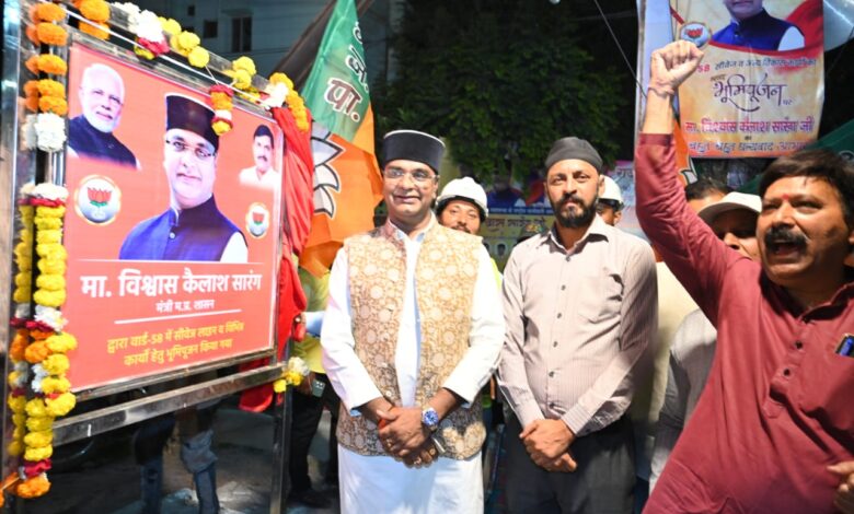 रहवासियों ने किया मंत्री सारंग का भव्य स्वागत